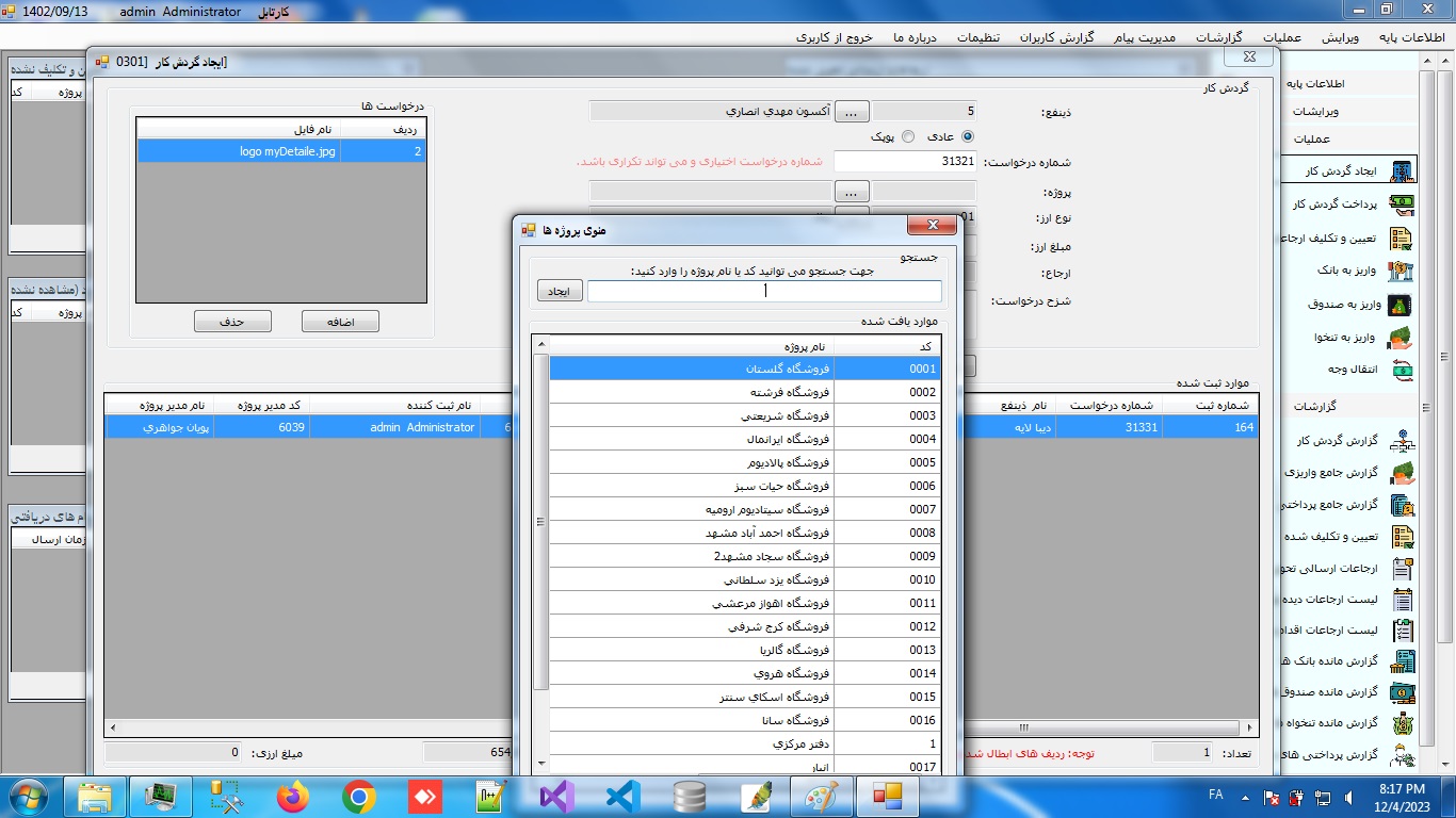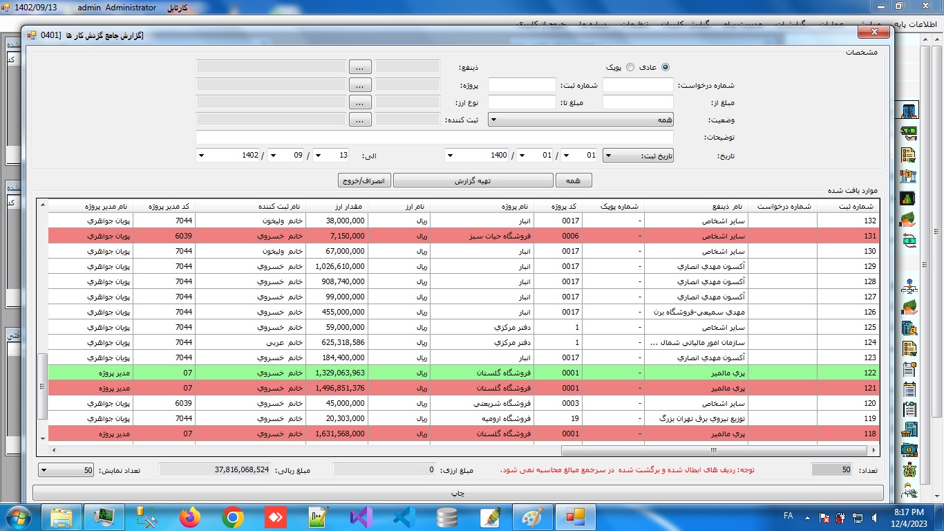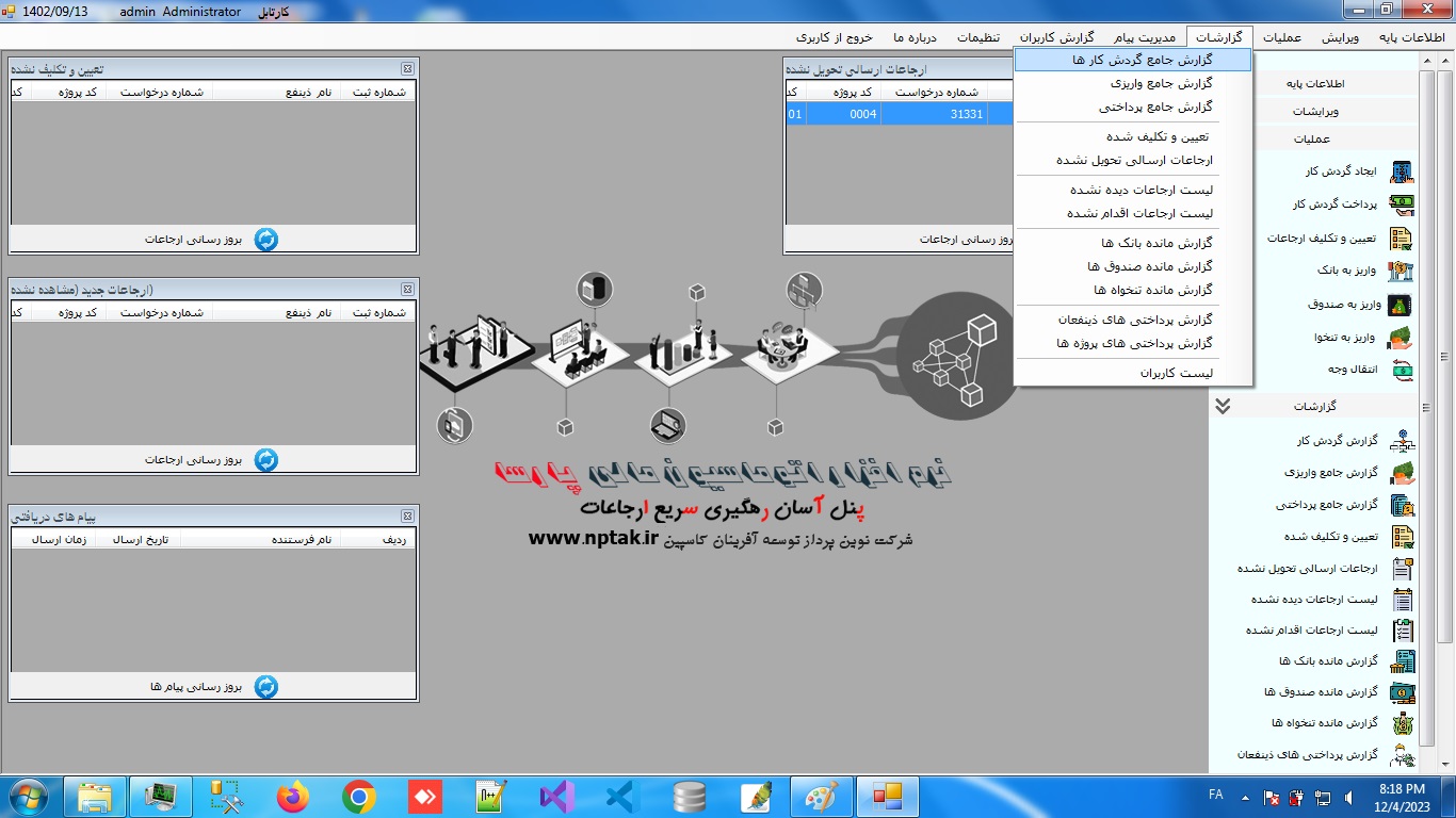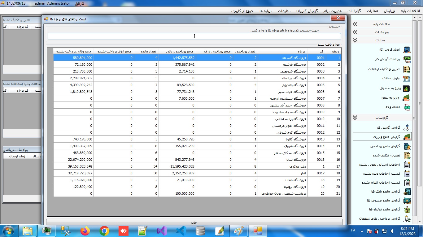 - گزارش از گردش حسابهای پروژه و ذینفعان