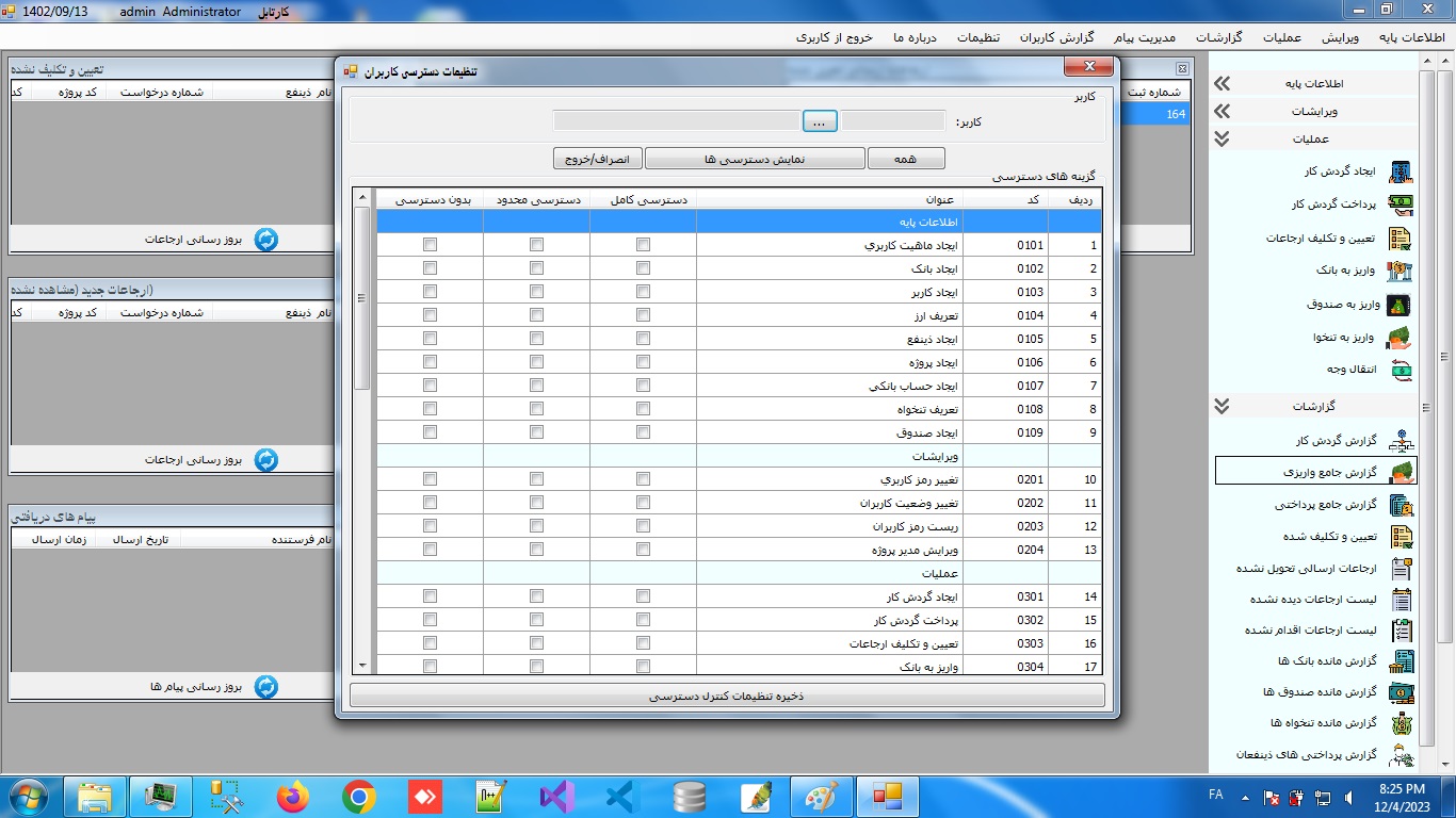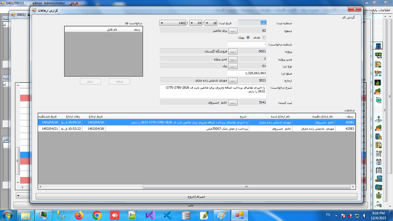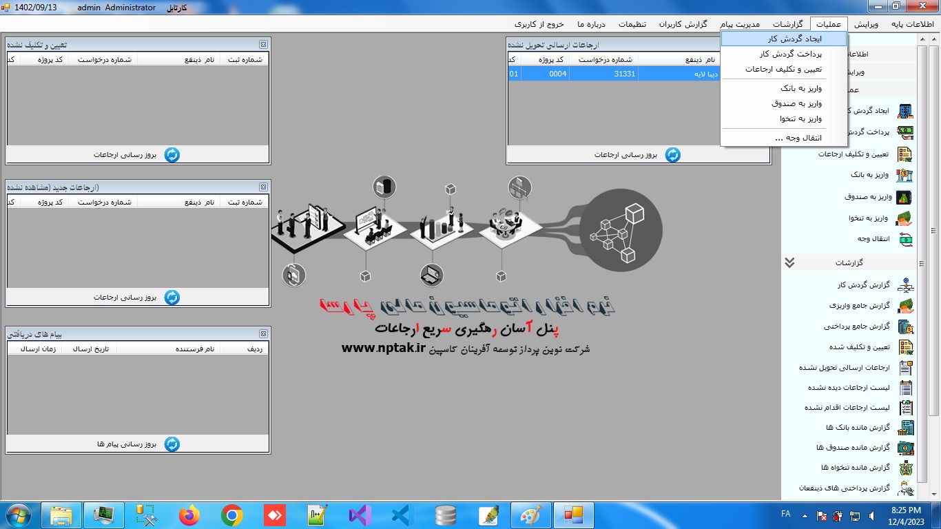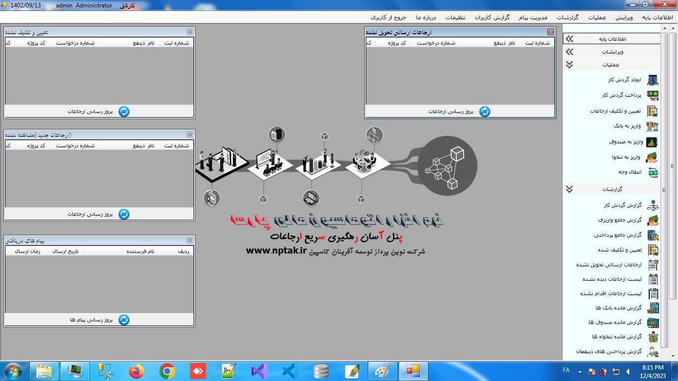 - گزارش از گردش حسابهای پروژه و ذینفعان